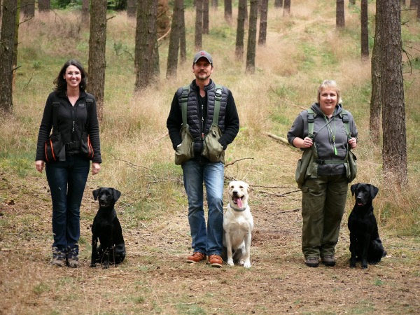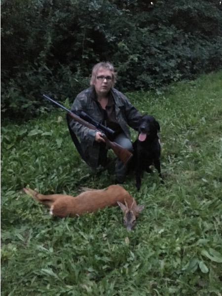28.07.2016 Beim heutigen Ansitz erlegte Helga einen Bock. Mit gutem Schuß sprang das Stück ab und verschwand im Bestand. Mit Corvin ging es zur Nachsuche. Der Anschuß war schnell gefunden und Helga schickte Corvin zum Bringslen. Innerhalb kürzester Zeit brachte Corvin (beide auf allen Vieren) zum Bock im dicksten Unterholz. Wieder eine tolle Leistung.