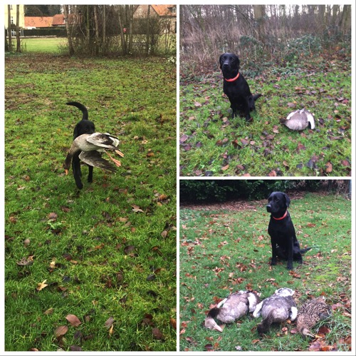 Zum Schluß kam Garron zur Unterstützung zum dritten Treiben dazu. Corvin und Garron arbeiteten dann noch 11 Enten am Wirtschaftshof.