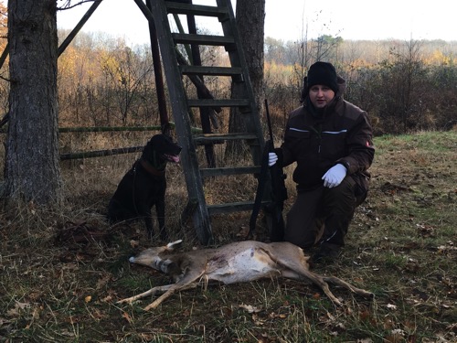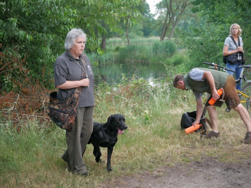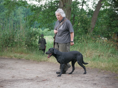 In Teamarbeit mit Henia war die Nachsuche erfolgreich. Corvin verschwand im dichten Unterholz und trieb die Gans raus so dass Henia die Gans apportieren konnte.