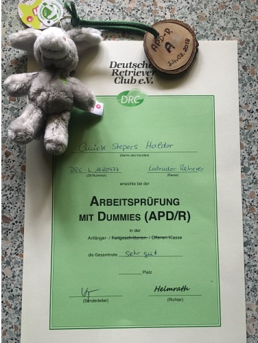 18.04.2018 Haldor ist jetzt bald zwei Jahre alt und liebt es mit Garron zu toben. Er ist mal ein etwas anderer Quick Steper und somit genau richtig für Herrchen. Beim Dummytraining und auch bei der jagdliche Ausbildung ist er freudig dabei. Die Nase ist ständig im Einsatz und Spuren werden ausgearbeitet. Mit Geländeübergänge und dichten dornigen Bewuchs hat er kein Problem. Auf Spaziergängen hält er schön den Kontakt. Er ist ein lustiger Hund mit eigenen Ideen, einem leichten Dickkopf und schönen Kulleraugen.