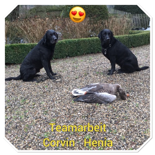 05.12.2018 Corvin und Garron fahren heute mit uns zur Entenjagd. Beide waren wieder freudig und eifrig dabei. Es ist immer wieder schön wie geduldig die Beiden warten um nach dem Ablasen arbeiten zu können. Garron war nicht bei allen Treiben dabei dafür später mit Schwester Gina bei der Nachsuche. Kein Buschwerk wurde ausgelassen und am Ufer immer die Nase im Einsatz. Die Beiden sind ein tolles Team.
