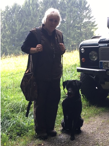 19.05.2017 Beim heutigen Ansitz kam Helga auf einen braven 6er zu Schuß. Mit Blattschuß sprang der Bock am Rande einer Schneise in den dichten Bestand. Ohne lange zu warten, da das Licht nicht mehr lange hielt, brachte Thorsten Corvin. Helga arbeitete ca. 25m auf dem Feld mit Corvin am Riemen, bevor es in den Bestand ging. Hier kamen beide zusammen nicht mehr weiter und Helga schickte Corvin zum Bringseln. Nach kurzer Zeit kam er mit Bringsel im Fang zurück und wir krabbelten auf allen Vieren hinter Corvin her. Nach 20m lag der Bock verendet in den Ästen. Wieder eine hervorragende Arbeit von Corvin und Helga.