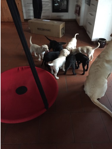 11.09.2017 Die Welpen sind da. Vier Gelbe und vier Schwarze. Drei Rüden und fünf Hündinnen. Ende Oktober werden wir die Welpen besuchen.
